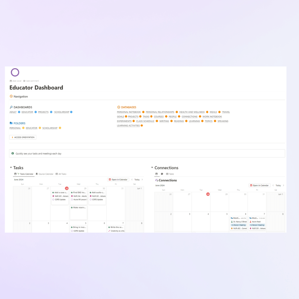 💻 Complete organizational system, including folders for personal, educator, and scholarship life areas.