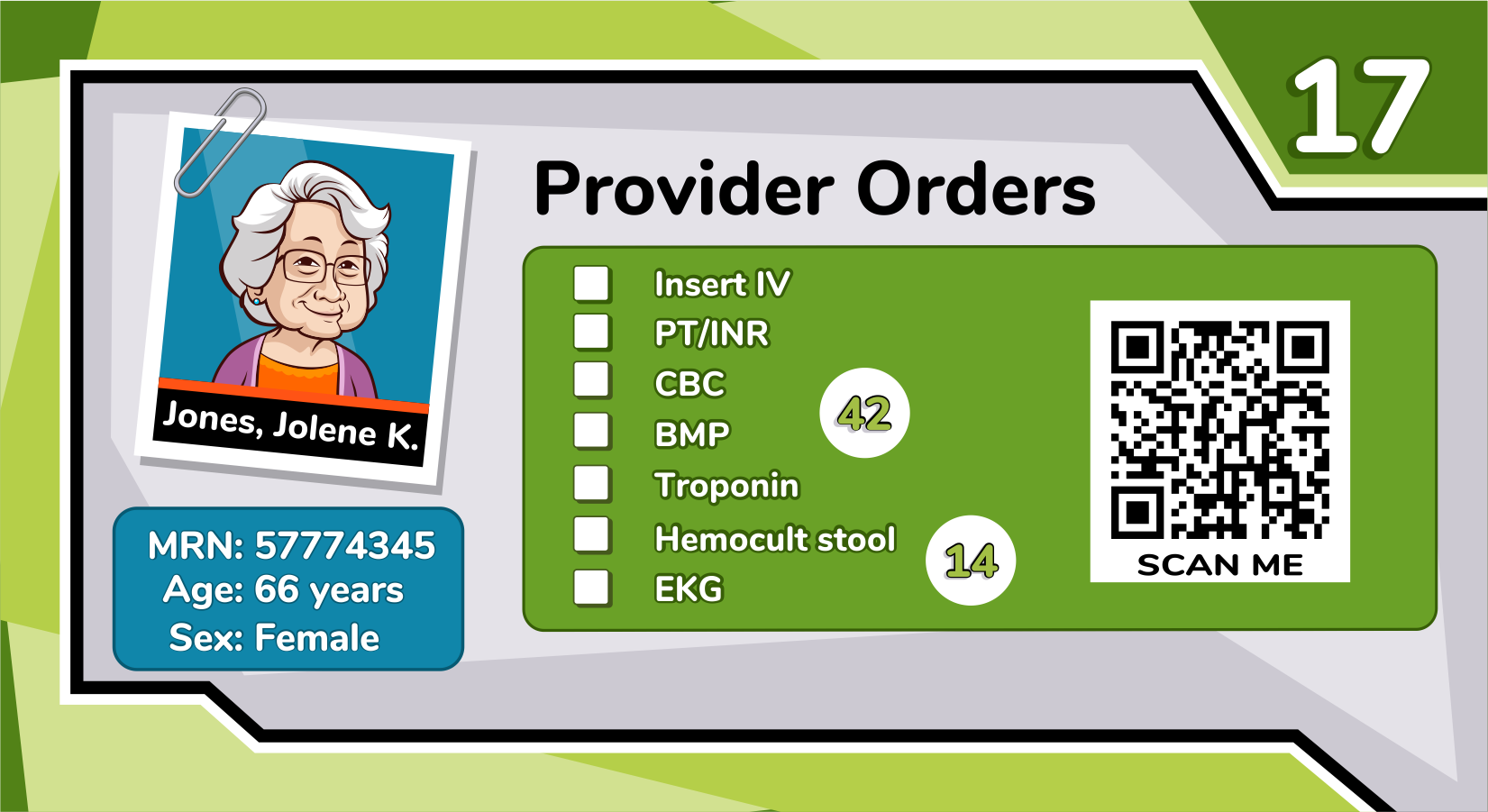 🗣️Through interactive puzzles within the deck and QR codes that connect to online questions, students must use teamwork, communication, and clinical judgment to complete patient care.